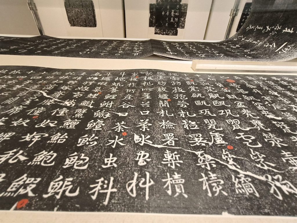 黃宗義表示,這回展出的數十件藏品中,最珍貴的是2015年發現之後,經由科學考古出土,目前在海外僅能看到的唯一全套〈洛陽西朱村曹魏大墓記物石牌〉拓片合裱,總共八軸,每軸三十二片,這套石牌加上其他相關出土文物,成為東漢及三國史上最有價值的第一手史料,也證實了史載曹魏高陵的存在。同時也因為這些字體及書風完全脗合東漢熹平石經,可以吸引更多書法愛好者興趣,而且256片拓片旁,又能欣賞到當代年輕書法家謝福龍先生的精緻朱文細楷,以及南投中臺禪寺世界博物館長見諶法師的題跋。