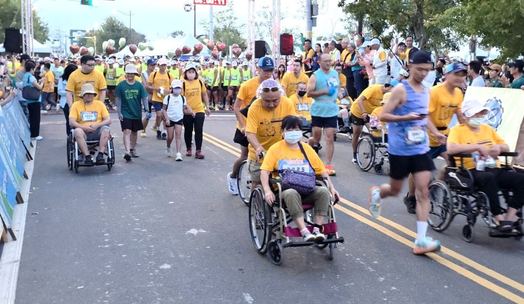 埔里山城派對馬拉松在身障勇者領跑下展開,此次活動吸引四千五百名跑者參與。(圖片埔里鎮公所提供)