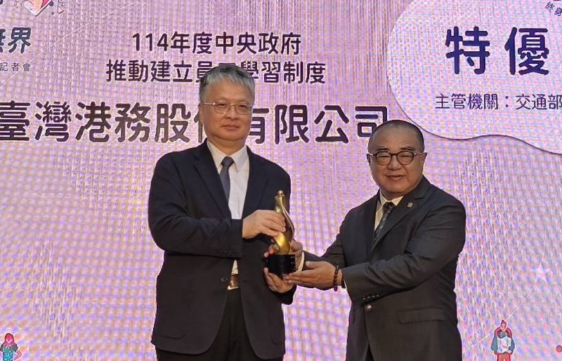 臺灣港務公司長期致力於員工學習制度與人才發展的推動,獲得教育部「中央政府推動建立員工學習制度獎勵」二0二五年特優獎最高殊榮,展現港務公司在培育永續人才與推動學習型組織方面的卓越成果;由教育部政務次長劉國偉頒獎,並由臺灣港務公司副總經理高傳凱代表受獎。