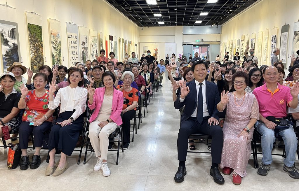新北市府文化局攜手中華文耀文教經貿交流協會辦理「中華文耀.乙巳之美.金蛇禧春—國際藝術聯展」十九日於新北市藝文中心揭幕,展覽匯聚台灣、中國、澳洲、新加坡等地近百名藝術家共一五0件作品,涵蓋水墨、油畫、水彩、雕塑、陶藝及攝影等多元媒材,呈現東方文化底蘊與當代藝術交融的多樣風貌;展出至十月廿六日。