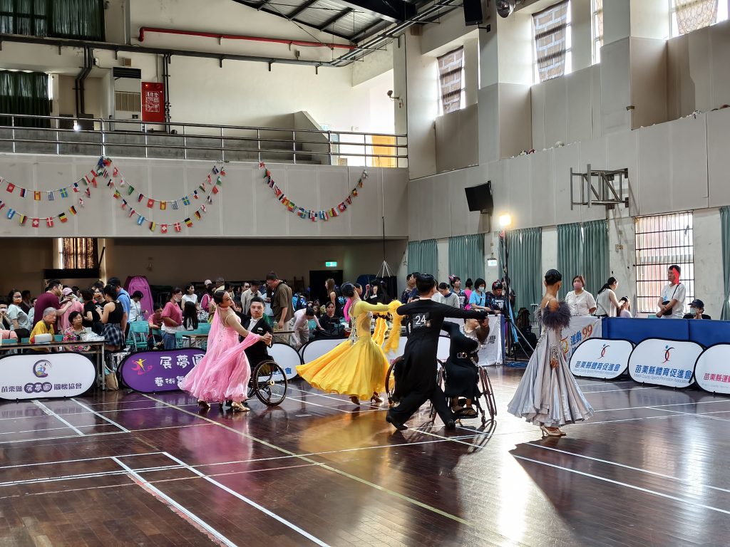第十二屆《展夢圓盃》全國身心障礙輪椅舞暨運動舞蹈競技大賽,十九日在國立苗栗高中體育館舉行,有十四支身障團體組成的隊伍同台競技,展現精湛舞技和挑戰自我的精神。
