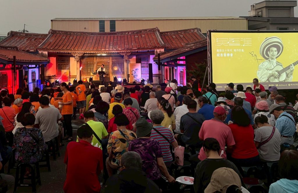 二0二五吳晉淮紀念音樂會十八日晚間在吳晉淮音樂紀念館溫馨登場,現場座無虛席,民眾在古厝前聆聽台語經典歌曲,留下難忘的體驗。