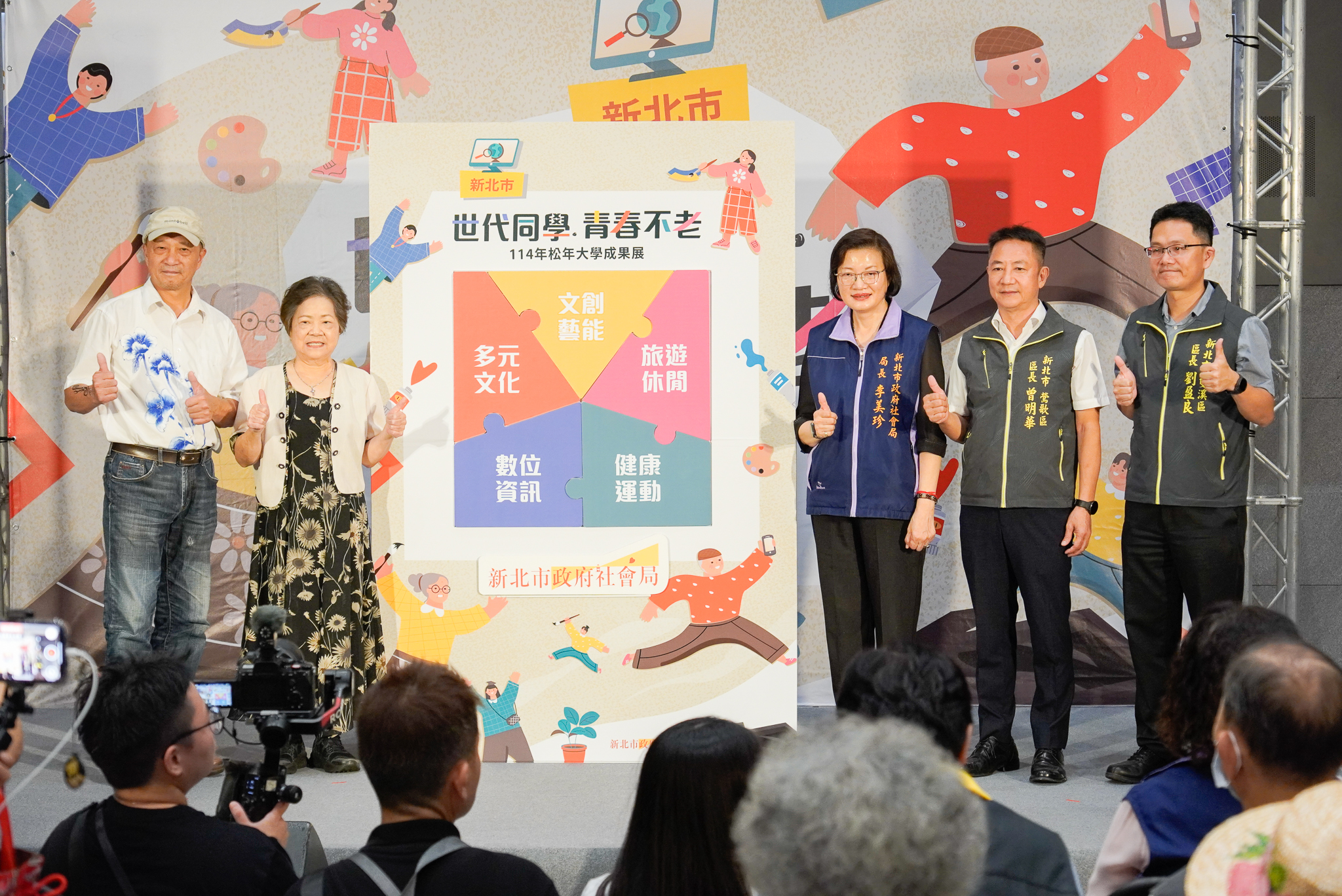 李美珍指出,新北市松年大學自87年開辦以來,明(115)年將邁入第28年,從最初的57班、1,967位學員,成長至今已達959班、3萬多名學員參與。課程涵蓋數位資訊、多元文化、文創藝能、旅遊休閒、健康運動等多面向,讓長者在輕鬆氛圍中快樂學習、延緩老化、增進社會連結,活出精彩的銀髮人生。