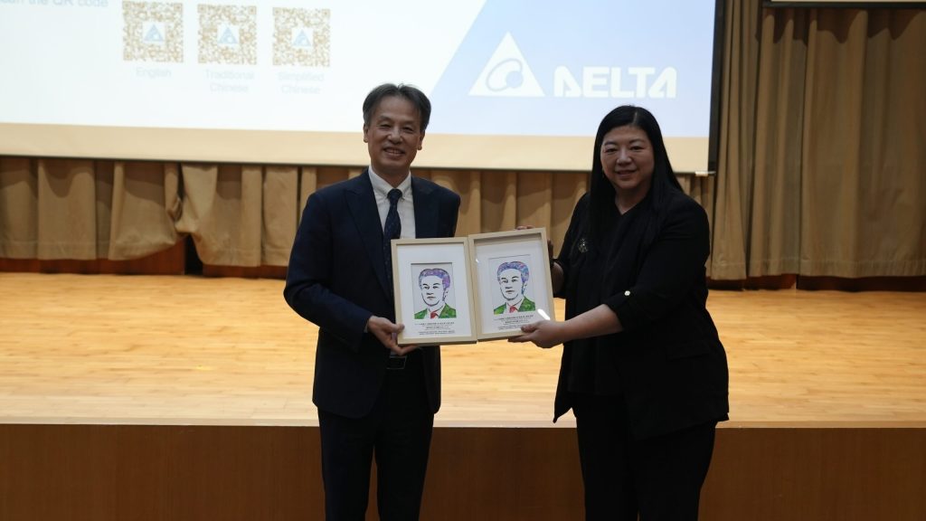 龍華科大校長葛自祥致詞時表示,台達電是台灣極具代表性的企業之一,與AI的發展息息相關。此次講座將為學生帶來寶貴啟發,協助同學在邁向職場的過程中掌握新趨勢、強化就業力。陳啟禎指出,此次講座的契機源自今(114)年三月龍華科大師長參訪台達電時的交流與互動。自2022年起,台達電即積極推動與龍華科大的產學交流與實習計畫,未來更期望在台灣及海外據點拓展多元交流機會。