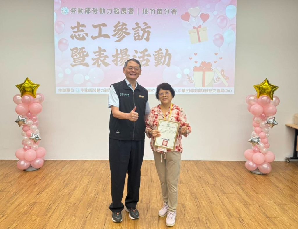為表達對志工的肯定與感謝,勞動部勞動力發展署桃竹苗分署於今(20)日在新竹縣麻布山林舉辦「114年度志工參訪暨表揚活動」,表揚服務滿10年以上的8位久任志工及9位優秀志工,感謝他們奉獻時間、熱心服務,長年站在第一線協助民眾解決問題,展現無私奉獻的精神,令人敬佩。