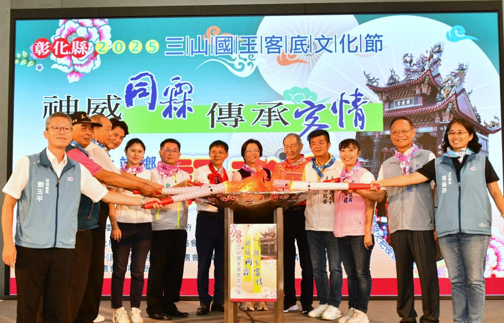 二0二五彰化縣三山國王客底文化節,將於二十五、二十六日在永靖鄉同霖宮辦理,二十日在縣府中庭舉辦記者會,縣長王惠美、三山國王客家文化協會會長胡祥畯、同霖宮主委黃一清等人邀請民眾參與,屆時將有三十九間三山國王廟共一一七尊神尊齊聚同霖宮,讓信眾一次獲得所有神明的庇佑,期盼透過活動彰顯客家族群的心靈寄託,也讓大家更認識永靖客庄。