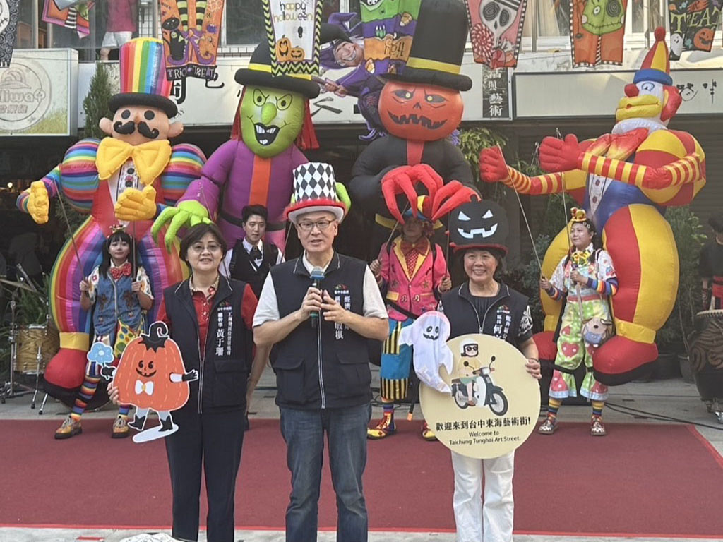 台中市政府經濟發展局於昨(18)日與東海藝術街商圈合作在科比意廣場舉辦「第十二屆東海國際藝術節-搞怪嘉年華:東海藝術街萬聖趴」活動,現場人潮滿滿,上百人化身吸血鬼、超級英雄、搞怪小惡魔齊聚一堂,還有音樂演出、市集闖關、嘉年華遊行、團隊闖關討糖等豐富內容,邀請民眾與好友、親子一同搞怪登場,共同感受藝術街滿滿的節慶與創意氛圍。