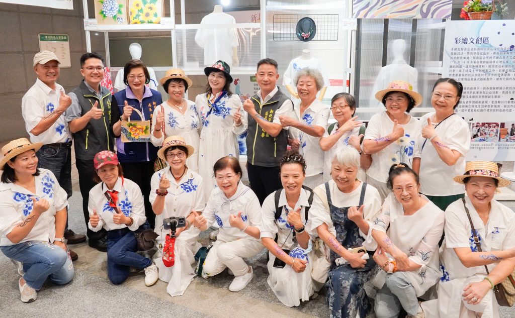 還有鶯歌區公所的手繪衣飾青花瓷班,在陳彩雲老師引導下,長輩們用畫筆將傳統青花瓷之美繪進現代服飾中,讓古典氣質與時尚創意在布面上交會,散發獨特的優雅韻味,讓人驚呼「這真的是阿公阿嬤設計的嗎?」