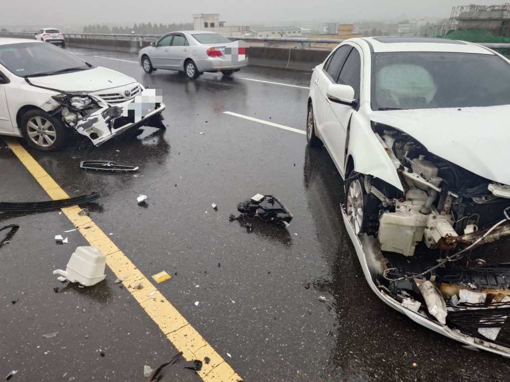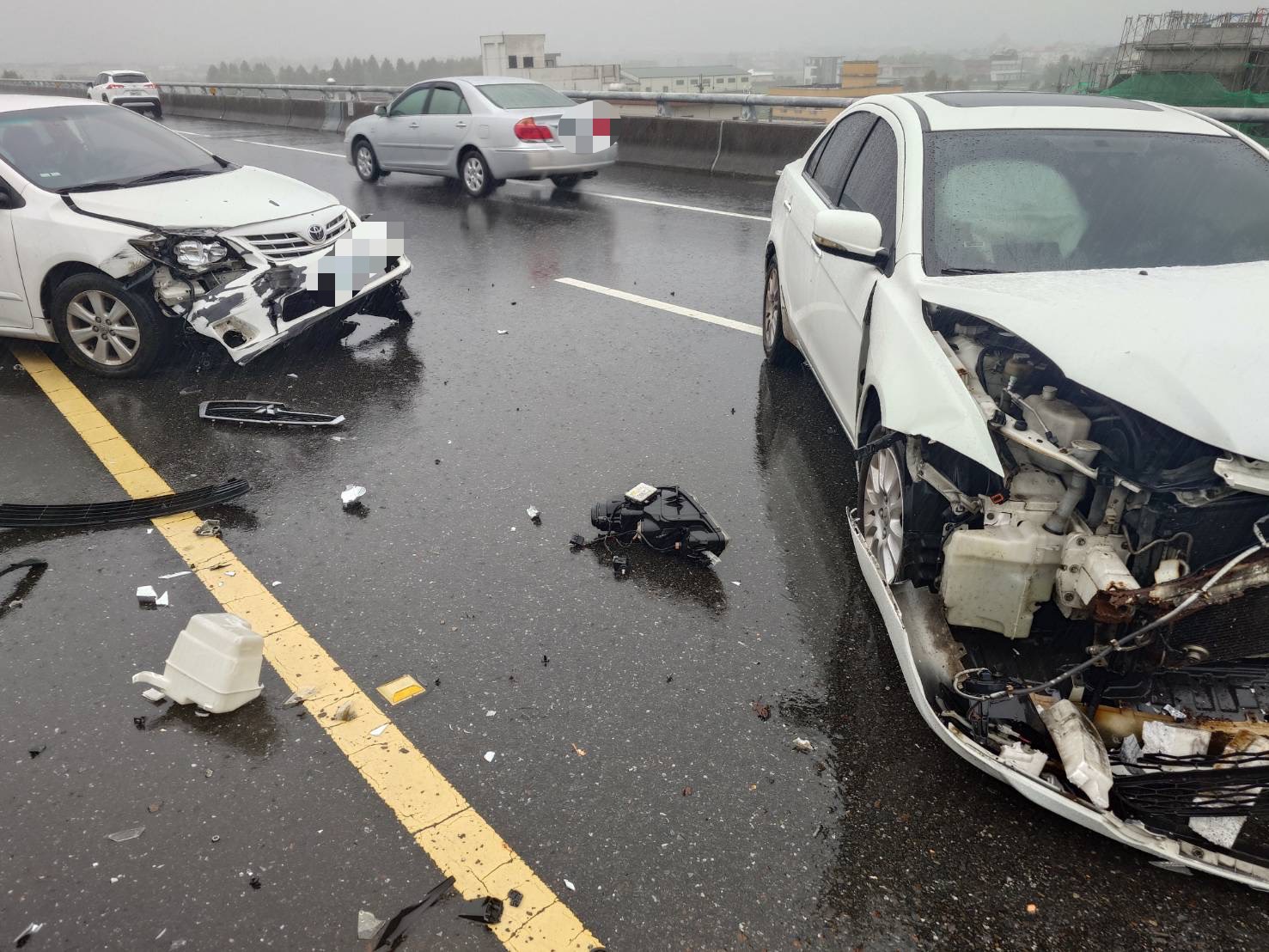 這起疑似天雨路滑導致的車高事故造成劉女左手擦傷,李男左手、腳部及胸口不適,兩人均由救護車送往博愛醫院治療,所幸皆無生命危險。警方表示,經檢測確認兩名駕駛酒測值均為零,事故現場已於短時間內排除,但也一度造成國道路段大塞車,讓北上民眾擔心趕不上上班課,事故現場於上午七時三十五分排除,恢復通車。