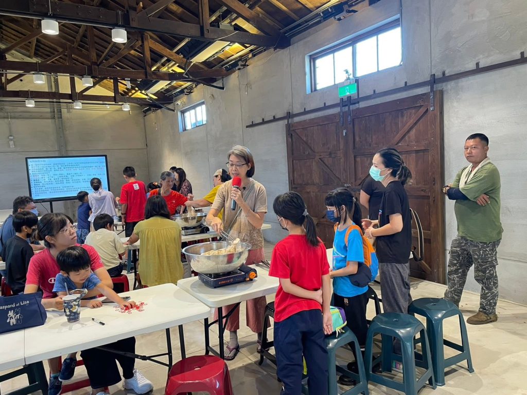 邱千芳教導著大家菱角染。(記者張淑娟攝)