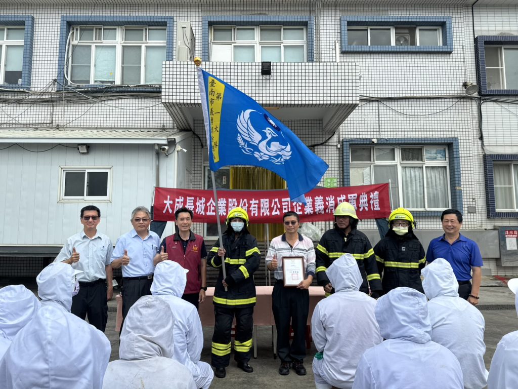 強化企業自主防災能量,大成長城企業股份有限公司秉持「自己財產自己護,即時消災才是福」的信念,二十一日舉辦企業義消成軍典禮,並模擬突發火警情境,進行兩項實地演練,展現企業防災決心與行動力。