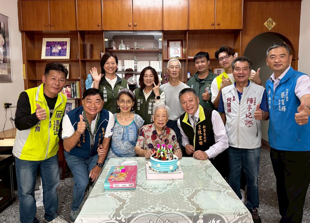 新營公所說,新營區今年共有十七位百歲人瑞,分別為大宏里一百零三歲許曾秀香、民生里一百零三歲朱汝根、忠政里一百零二歲趙慕貞、新南里一百零三歲葉蔡罔飼、王公里一百零一歲王壬辰、永平里一百零一歲郭沈三棕、南興里一百零一歲孫吳國英、新北里一百零一歲盧魏碧珠、新東里一百零一歲伍恢鈞、新南里一百零一歲洪蓮。