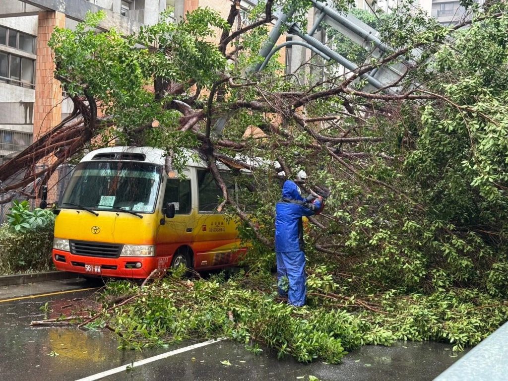 不敵強風 竹市路樹倒塌壓損小巴幸車內無人