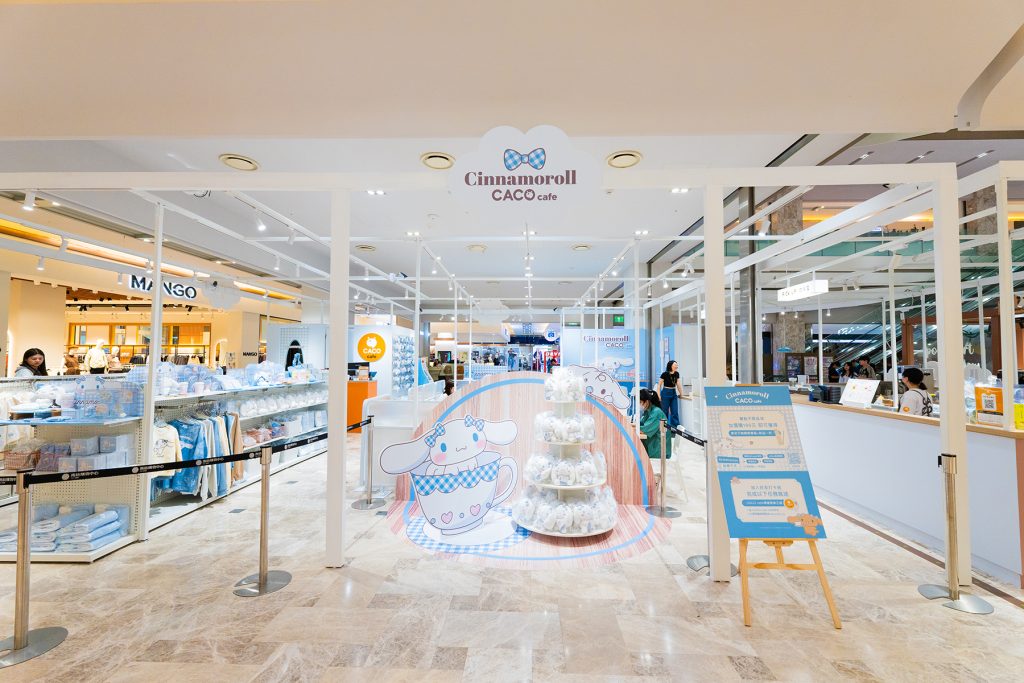 CACO cafe台南南紡購物中心、高雄夢時代購物中心全面改裝,打造期間限定CACO cafe x大耳狗喜拿主題複合式咖啡廳,空間以藍色為主題汲取明星靈感,設計多個夢幻場景:療癒打卡區、巨型大耳狗牆、主題吧台、拍貼、姓名貼機互動區,每個角落皆是拍照熱點。