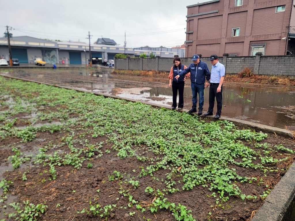 農業局長陳冠義偕同農糧署北區分署長林傳琦、桃園市農會總幹事周宗維、蘆竹區農會總幹事陳春郎等,今早前往蘆竹區視察短期葉菜受災狀況。受風神颱風外圍環流夾帶豪雨影響,目前已有農場淹水面積逾二公頃,初估損失逾百萬。