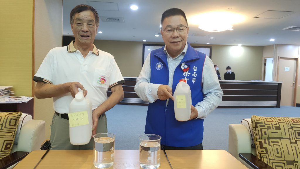 烏山頭水庫設置光電板,水質引發爭議,議員蔡育輝趁環保局工作報告時,桌面擺設各種不同來源的水,指不同時間取自烏山頭的水,色澤已經偏綠,市府強調每月檢驗,然遲未看見公布結果,認為有人禍,要求政風處查處,王家貞、趙昆原也跟進。環保局指出,目前水源地只有濕地需要環評,朱正軒認為,光電板處理問題原在十年後,風災讓台南提早面臨,光電板可回收,循環再利用,應持續追蹤。