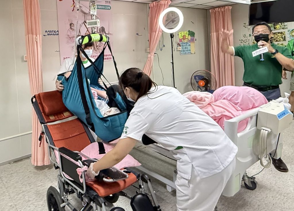 創世台中分院服務的植物人院民無論是移位、翻身、上下床,都需仰賴照護人員,平均每人一天須負擔180次的移動,不但對照護者造成體力重負,徒手搬動也增加院民拉傷等風險,國際獅子會300C-1區特地號召獅友們共同募集「懸吊式電動移位設備及高背移位吊帶」等照護設備,幫助植物人建置更安全、有尊嚴的照護環境,同時減輕照護人員因長期過勞造成的職業傷害。