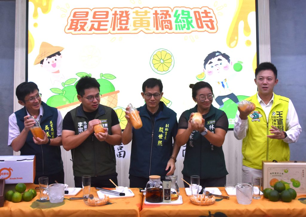 市府副秘書長殷世熙表示,台南擁有得天獨厚的氣候與土壤條件,孕育出各式香甜美味的水果,其中椪柑是秋冬代表果品之一,由於果實成熟期日照充足、氣候溫暖,外皮因葉綠素還沒降解故保留青綠外觀,形成獨特的「青皮椪柑」,口感酸甜、香氣濃郁,深受國內外消費者喜愛。