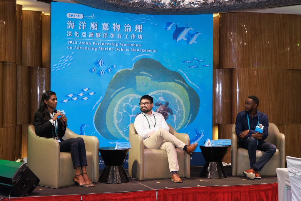 此外,3位得獎者亦於「2025海洋廢棄物治理深化亞洲夥伴孕育工作坊」期間親身參與製作桌上「海洋廢棄物清除船」模型,並表示海廢治理不僅止於教育推廣,更需實際投入清除工作。無論是設置無人化清除裝置,或動員人力進行淨海清理,皆是推動成效的重要環節。他們也指出,海洋廢棄物治理範疇廣泛,從源頭減量、清除淨海、回收利用、環境教育到國際交流,皆需協同推進,方能有效守護海洋環境,實現永續發展目標。