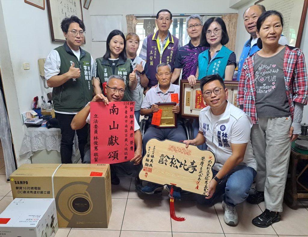 弘揚敬老美德,表達對長者的崇高敬意與祝福,南區區長蕭琇華親自前往區內剛好滿百歲的人瑞家中賀節,除禮金、賀匾、議會禮品、衛福部金鎖片之外,還有總統府敬老狀,表達國家對長者的關懷與敬意。