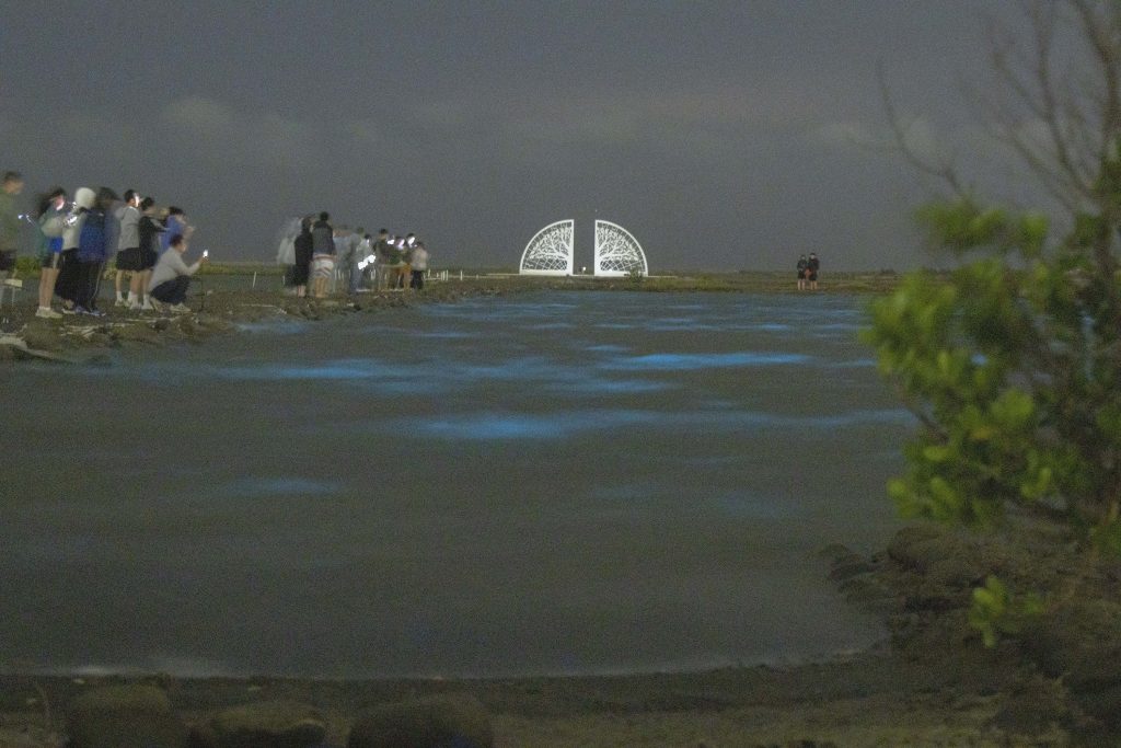 前來朝聖的蕭士桀指出,扇形鹽田「藍眼淚」自二十一、二十二日陸續出現,鹽田的海水被強風吹起波浪,藍色螢光浮在水面,儘管螢光相當微弱,但因周圍昏暗,以目視就能看到水域中的「藍眼淚」,在水面波浪上下「跳動」,十分吸睛。