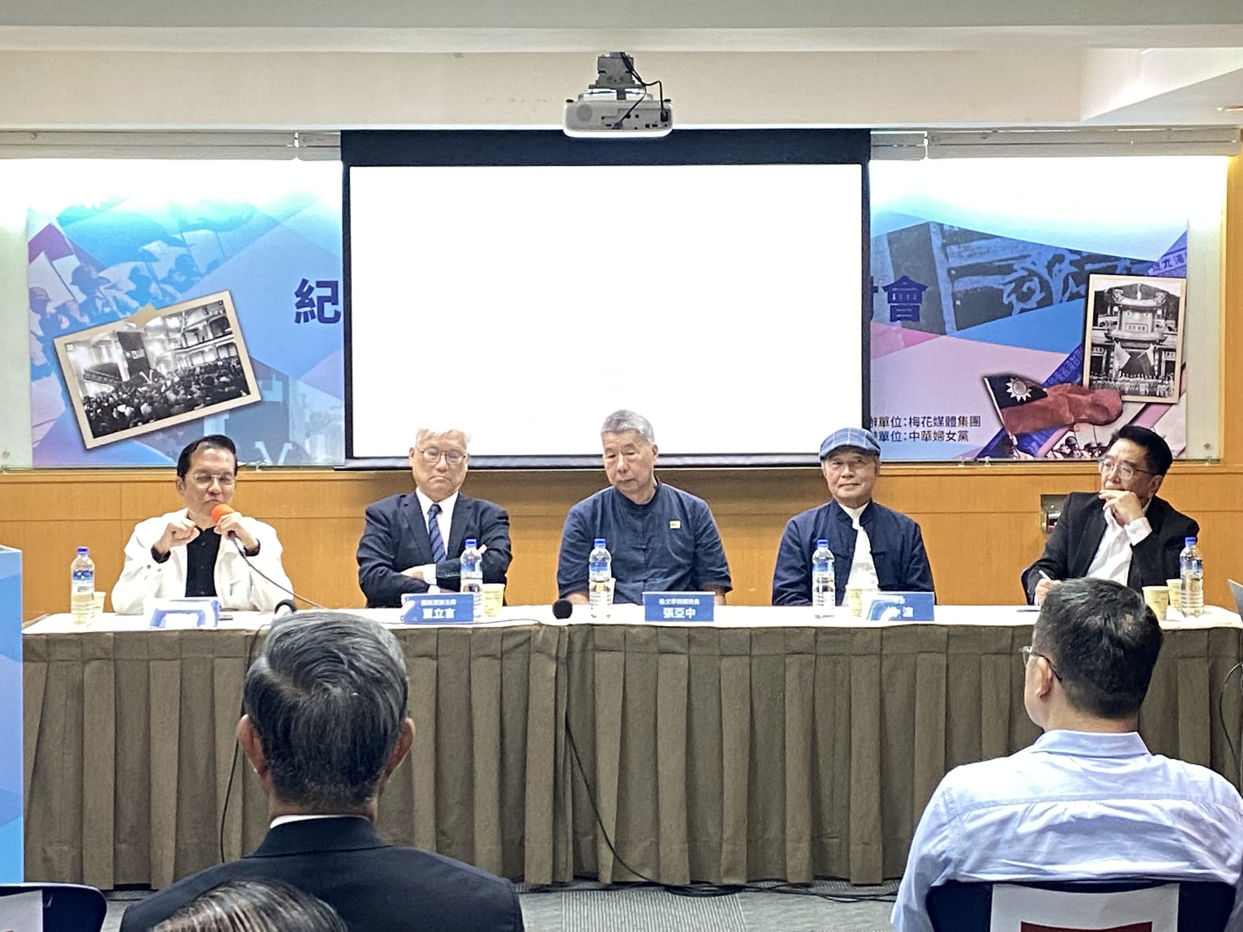 梅花媒體集團二十二日於台北舉辦「台灣光復八十週年研討會」,主題為「導正史觀、放眼未來」。 (記者王超群攝)