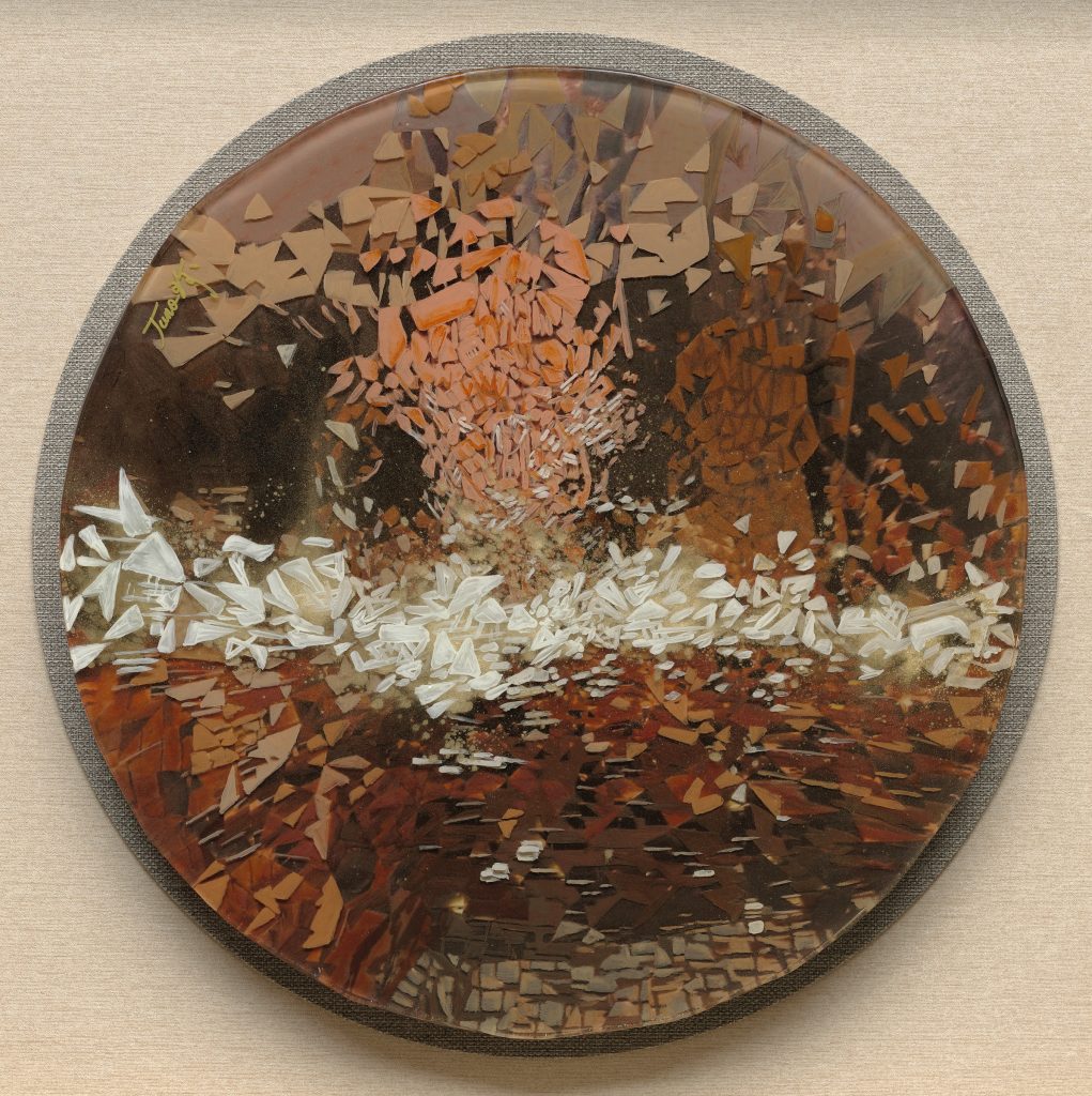神木樹齡三千年,被鋸開的樹幹橫切面,會顯出三千條年輪;三千條年輪除以六,就這樣以每圈五十年的歲月,濃縮在六圈圓形基座裡。這是嚴振章的計算與想像。