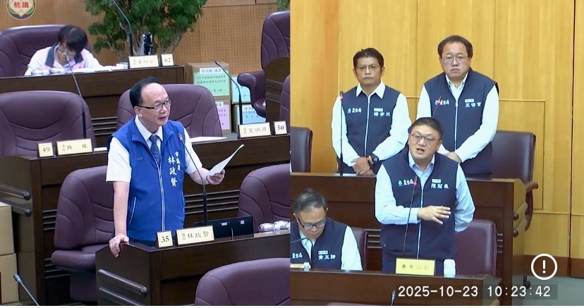 桃園市議會今(23)日進行農業局、衛生局工作報告,國民黨籍市議員林政賢就非洲豬瘟、犬貓認養、清華大學附屬醫院、醫療區域病床、皮蛇疫苗等議題提出質詢。
