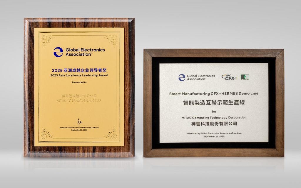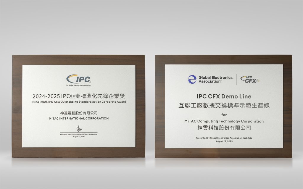 神達控股股份有限公司(簡稱神達,TWSE:3706)旗下神達電腦、神雲科技實現IPC-CFX-2591與IPC-HERMES-9852標準,成就智慧工廠新典範。榮獲由全球電子協會(Global Electronics Association,簡稱GEA)頒發四大獎項肯定,神達電腦獲頒「2024-2025 IPC亞洲標準化先鋒企業獎」、「2025亞洲卓越企業領導者獎」;神雲科技獲頒「IPC CFX Demo Line互聯工廠數據交換標準示範生產線」、「Smart Manufacturing CFX+HERMES Demo Line智能製造互聯示範生產線。