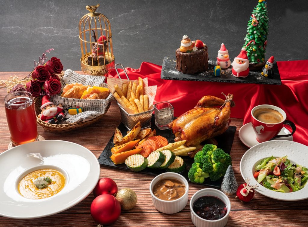 歲末將至,感恩與聖誕氣息瀰漫開來,福容桃園機場捷運A八店五樓「ABar」,套餐設計以節慶氛圍與共享概念為核心,以「南瓜濃湯」揭開序幕,由「黃金脆薯佐松露美乃滋」與「迷你起司鮮蝦可頌」擔當開胃菜,接著「蜜瓜帕瑪火腿沙拉」與「季節烤蔬」平衡層次。主餐「爐烤烤雞」焦香外皮包裹多汁嫩肉,兩人分享剛剛好,最後以「草莓樹幹蛋糕」畫下甜蜜收尾。ABar鬧中取靜,搭配林口龜山夜色及機捷進站獨特背景,讓兩人約會更加難忘。