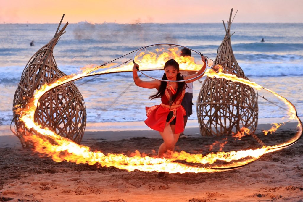 文化局派出「巷仔Niau」及「 七夕貓」同台出任務,從落日到星夜,每一場表演都在展現跨文化與跨世代的火舞能量,一窺火舞魅力,漁光島進行交管,出入請搭乘接駁車。