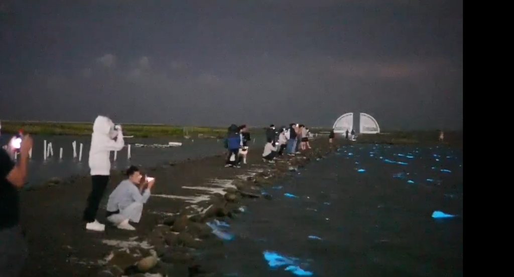 民眾表示,「藍眼淚」主要是夜光藻繁殖,多數在四至六月海水溫度較高時出現,十月下旬還能發現相當難得。這次主要在「生命之樹」的右側水域,漲潮時數量最多。