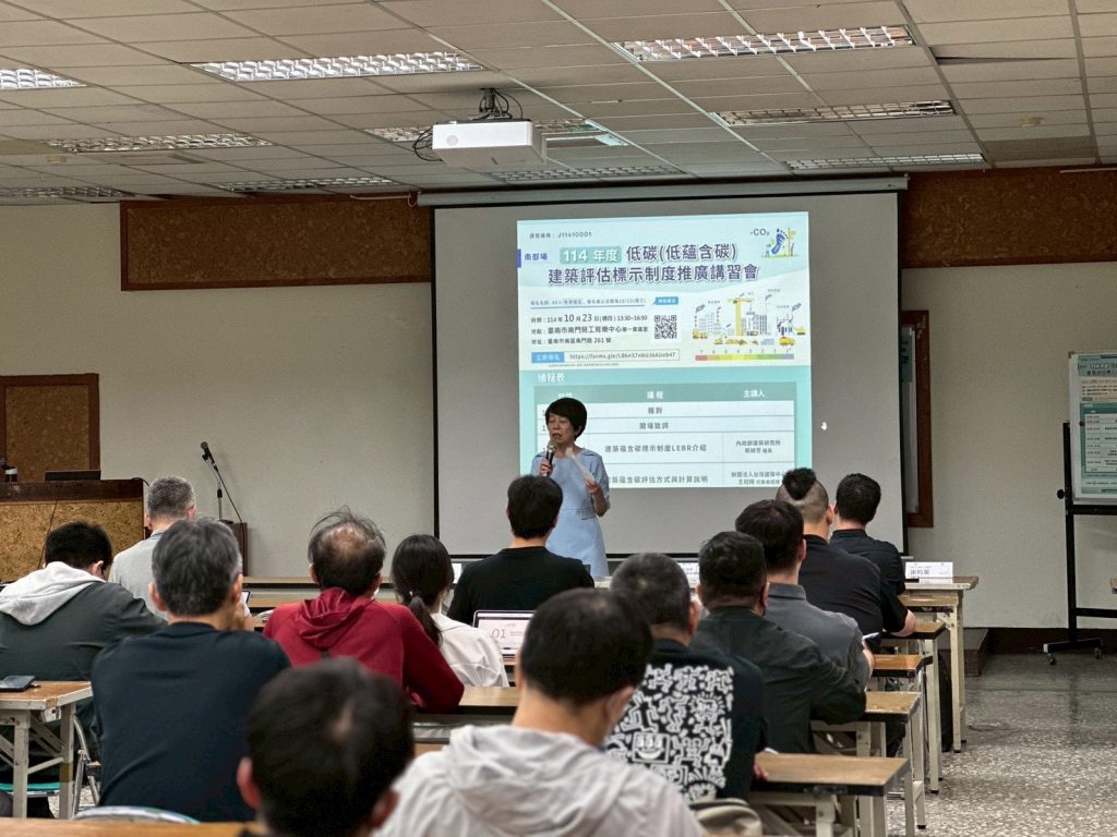 為推動台灣建築業邁向淨零碳排新時代,台南市環保局與內政部建築研究所攜手舉辦「低碳(低蘊含碳)建築講習會」南部場,於十月二十三日下午在南門勞工育樂中心登場。六十位建築師、公會代表、建商與學者參與,形成跨界對話的專業平台,回響熱烈。