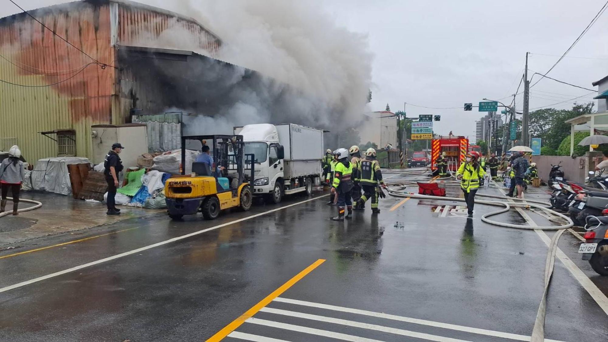 消防局說明,早上八點卅六分發生的二級火警,起火地點是棟地上一層的鐵皮結構建築物,內部隔間成三層樓,起火樓層、原因尚待釐清,財物損失還無法估計,火勢於中午十二點卅二分撲滅後,重機具到場協助火場清理,將待降溫後,火災調查科人員才能入內勘驗調查、釐清原因,總計出動各分隊卅四輛消防車、十輛救護車共一三二名救難救護人員。