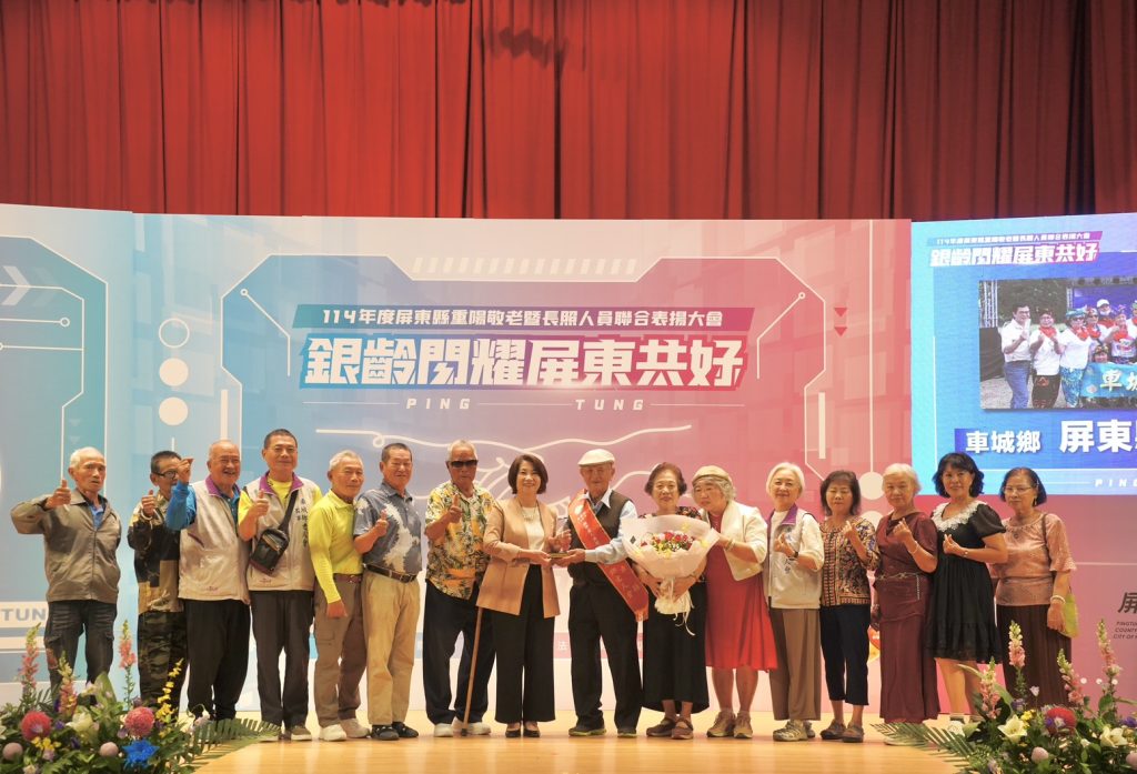 屏東縣政府二十四日表揚重陽敬老暨長照人員,包括三十名長青楷模、二十六名敬老楷模、兩個績優老人團體、四十五位長照人員及十五名團體獎,縣長周春米感謝他們守