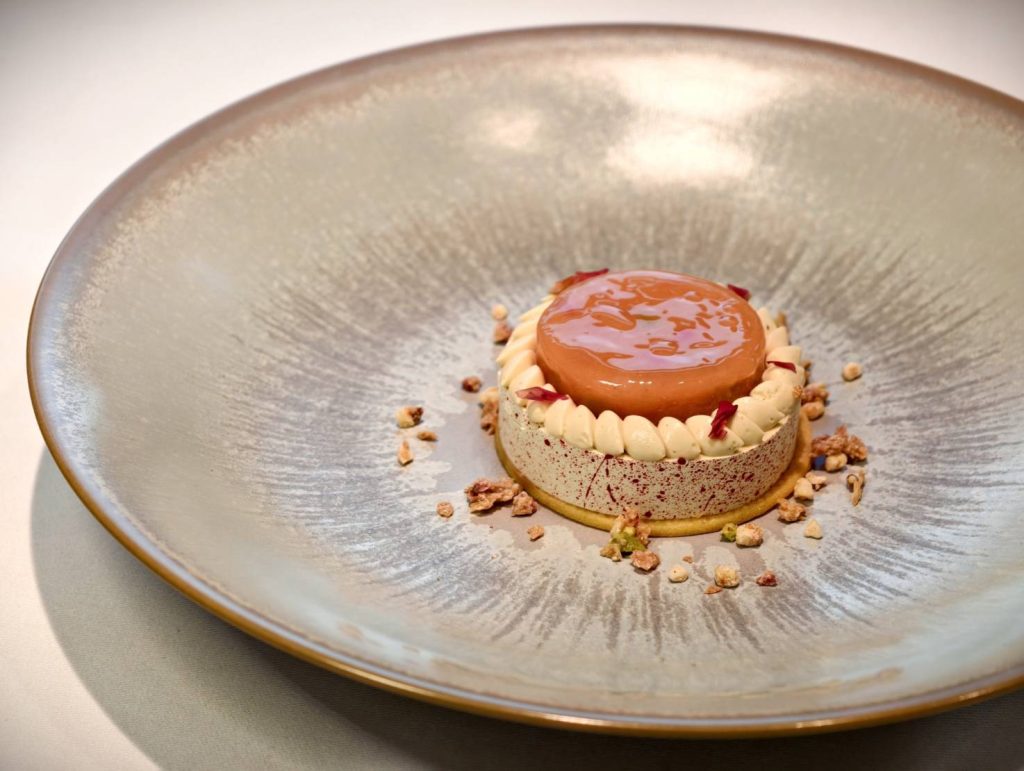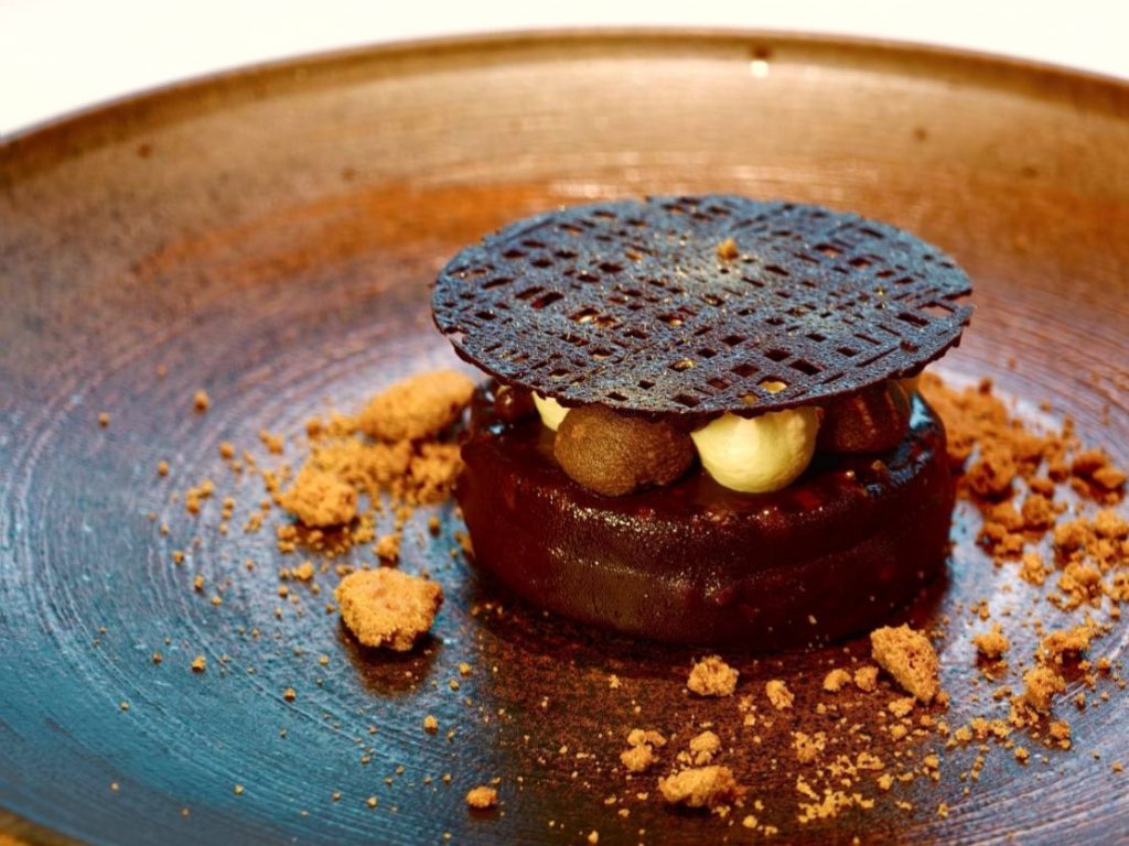 甜食愛好者推薦這道「紅烏龍芭樂」,主廚特製紅心芭樂果餡畫龍點睛,配上鬆軟的柳橙海綿蛋糕、紅烏龍香緹與白巧克力脆球,入口絲絲果香、茶香繚繞不散。微苦滋味的「桂圓巧克力」,嚴選70%黑巧克力慕斯製作,外層是杏仁巧克力、焦糖鮮奶油與巧克力香緹,香甜不膩,最適合搭配現沖熱茶享用。