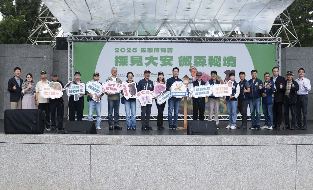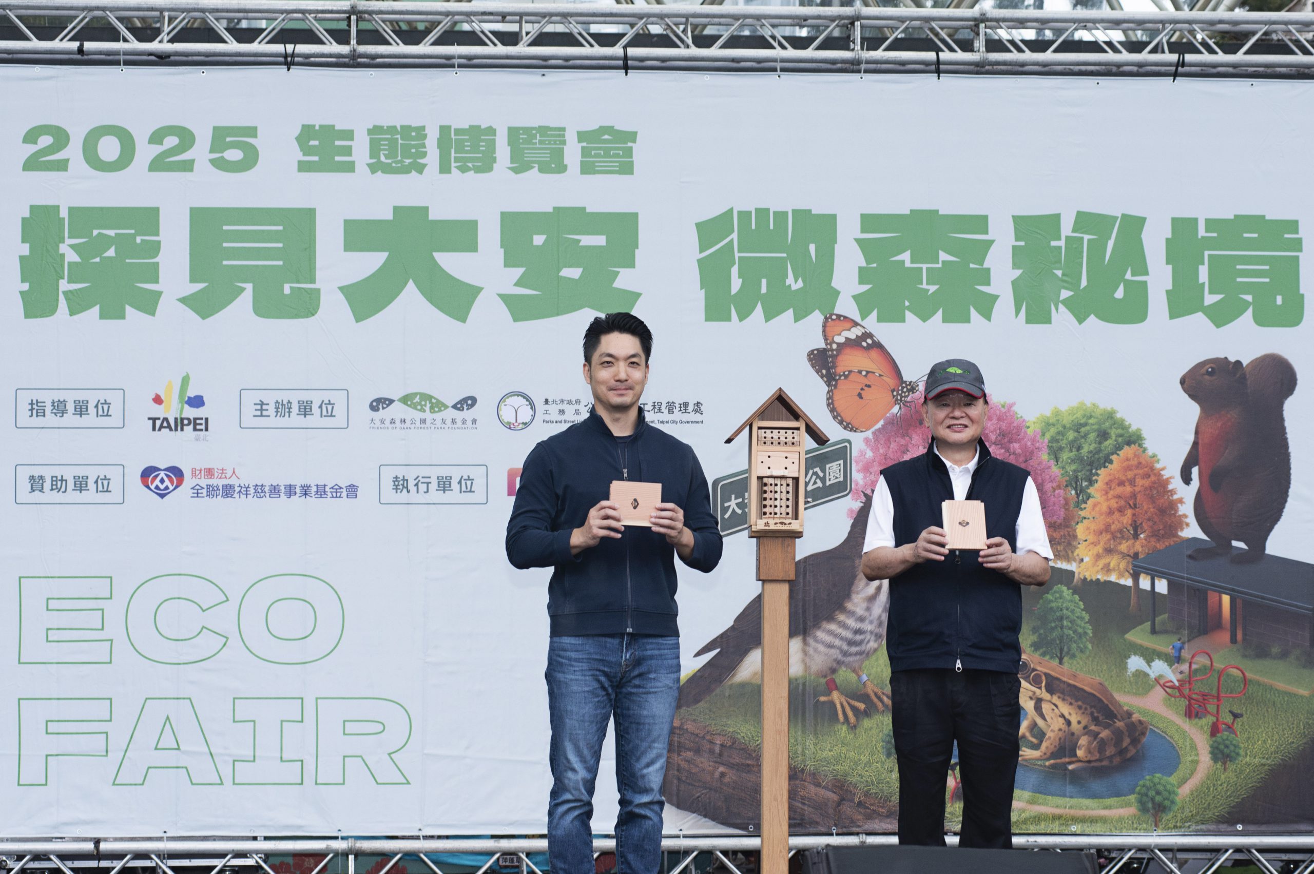 邁入第十個年頭的生態博覽會今(25日)上午於大安森林公園熱鬧登場!今年以「探見大安・微森秘境」為主題,邀請市民走進公園、貼近自然,重新發現城市中那些看似平凡、卻蘊藏豐富生命力的角落。當天現場特別舉行「蜂旅館揭牌」儀式,由臺北市長蔣萬安與大安森林公園之友基金會董事長林敏雄共同簽名留念,透過為蜜蜂打造新棲地的行動,喚起人們關注生態平衡與環境共生的價值。今年活動內容更加多元,結合「永續市集」、「生態體驗」、「集章任務」及「舞台演出」四大主題,讓民眾在探索與互動中親近土地、體驗自然的療癒力量,從日常的微小行動出發,為城市注入綠意與生機。