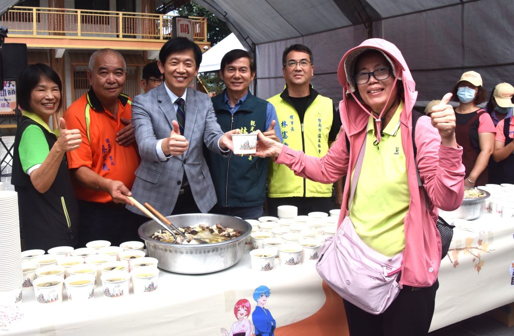 葉澤山表示,關子嶺溫泉美食節是台南秋季最具代表性的活動之一,每年都吸引許多民眾趁著季節來此泡湯品嘗美食。今年特別感謝關嶺社區發展協會用心籌備,重現睽違廿一年的經典「天下第一鼎」香菇雞湯,不但香氣四溢滋味濃郁,也讓民眾再次感受當年盛況與溫暖人情。