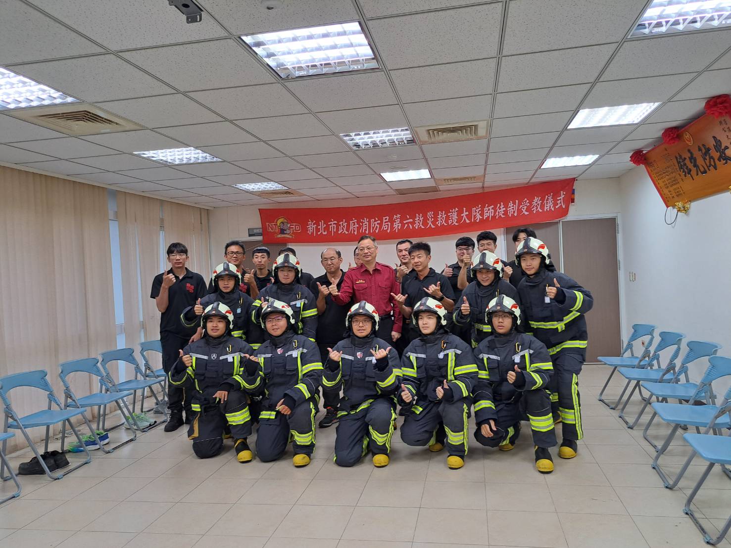 新北市消防局第六大隊指出,訓練期間舉行了充滿象徵意義的「消防授帽儀式」。授帽儀式是消防單位的重要傳統,象徵薪火相傳與使命傳承,由資深學長親手為新進人員戴上消防帽,並建立師徒制度,讓經驗豐富的消防員指導新血,傳承救災打火的專業與精神。這項儀式不僅代表新進同仁正式踏入消防行列,也象徵責任與榮耀的開始。