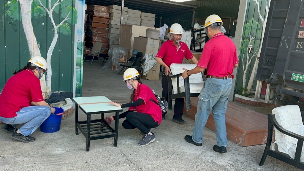 南市勞工局結合「做工行善團」志工力量,以專業技術化作關懷行動,在光復節連假也不休息,兵分多路前往關廟、安南區為弱勢家庭房屋修繕,也前往位於官田區二手家具倉庫載運家具送給案家,傳遞城市溫暖。