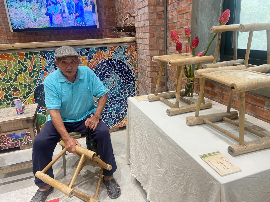 常在的老師孫堂珠也向來參觀竹凳展的遊客們導覽,並透過影片來呈現十六名學員學習採竹、剖竹、鑿孔等過程,辛苦終有所成。老師傅則告訴遊客們竹凳子是大有來頭的,早期新娘的嫁妝一定有竹凳,而竹凳有許多功能,其中還是新娘的踩腳椅,迎娶時,新娘坐著會踩在竹凳上,媒人婆會說吉祥語「腳踏高高,嫁到人家,生子中狀元」,而該竹凳也成嫁妝一起到夫家,新娘生產時,竹凳就成了助產的工具。