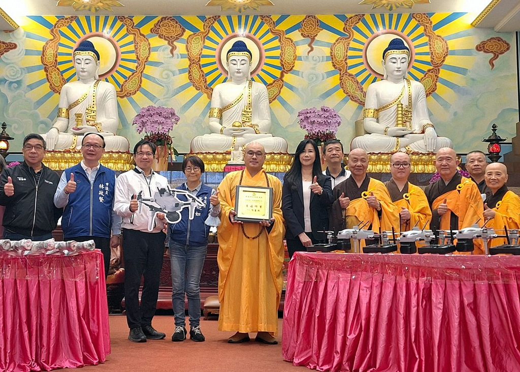 桃園市政府表示,桃園佛教蓮社於開山七十週年舉辦之「延壽安康重陽敬老感恩音樂會」中進行公益捐贈,捐贈總價新臺幣一百零六萬六千四百元之消防救災裝備,包括電動車火災冷卻用底盤式瞄子及M三任務型無人機。市府秘書長代表市長出席受贈及致詞,感謝桃園佛教蓮社長期支持消防建設,繼一一二年捐贈二支電動防水油壓剪及一台災情勘查車後,再度投入實質資源,展現宗教團體守護城市安全的力量。