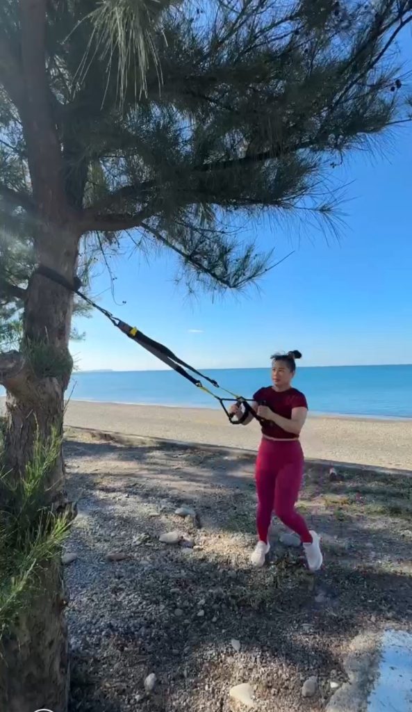 她說,旅途中看遍台灣美景,花東海岸沙灘上椰林,路邊涼亭,只要有支撐,都可以是她做懸吊訓練場(TRX),「花花」教練鼓勵國人應多鍛鍊,強化肌力、平衡、柔軟度和核心穩定,台灣邁向高齡社會,又有很多長期久坐族群,運動、按摩放鬆與伸展都是身體維持平衡良方。