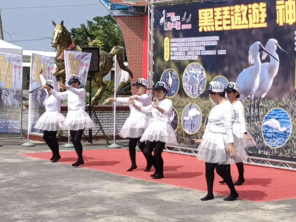 二0二五黑面琵鷺保育季二十六日以「黑琵遨遊.神采飛揚」為主題,在七股區正王府廣場登場,由在地藝陣與身著傳統服飾的小朋友迎賓秀揭幕,另有青年舞者以現代舞姿演繹飛翔的黑琵;現場更有鋁罐打造的黑琵藝術創作,呈現循環再生與藝術之美。