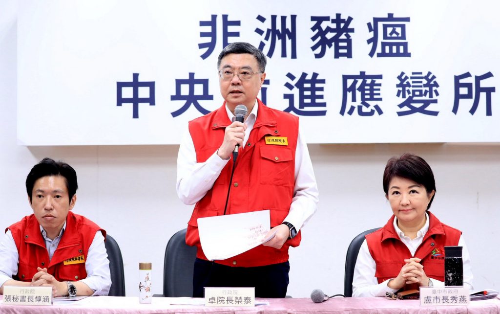 台中市養豬場爆發非洲豬瘟病例,二十二日中午十二時起全國豬隻禁運禁宰,並禁止廚餘養豬五天。卓榮泰二十六日上午主持應變會議並召開記者會,宣布延長禁宰運、禁廚餘十天,採「五天一週期」滾動檢討,阻止疫情擴散。