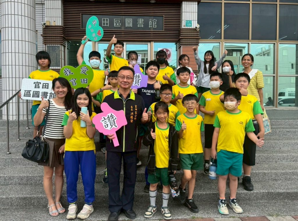 為培養學童閱讀素養與使用圖書館能力,近四十位官田國小學童前往官田圖書館參訪,在館員導覽下,度過書香與知識旅程,官田區長洪聰發也到場鼓勵學生,多多閱讀館內藏書,培養思考力及創造力。