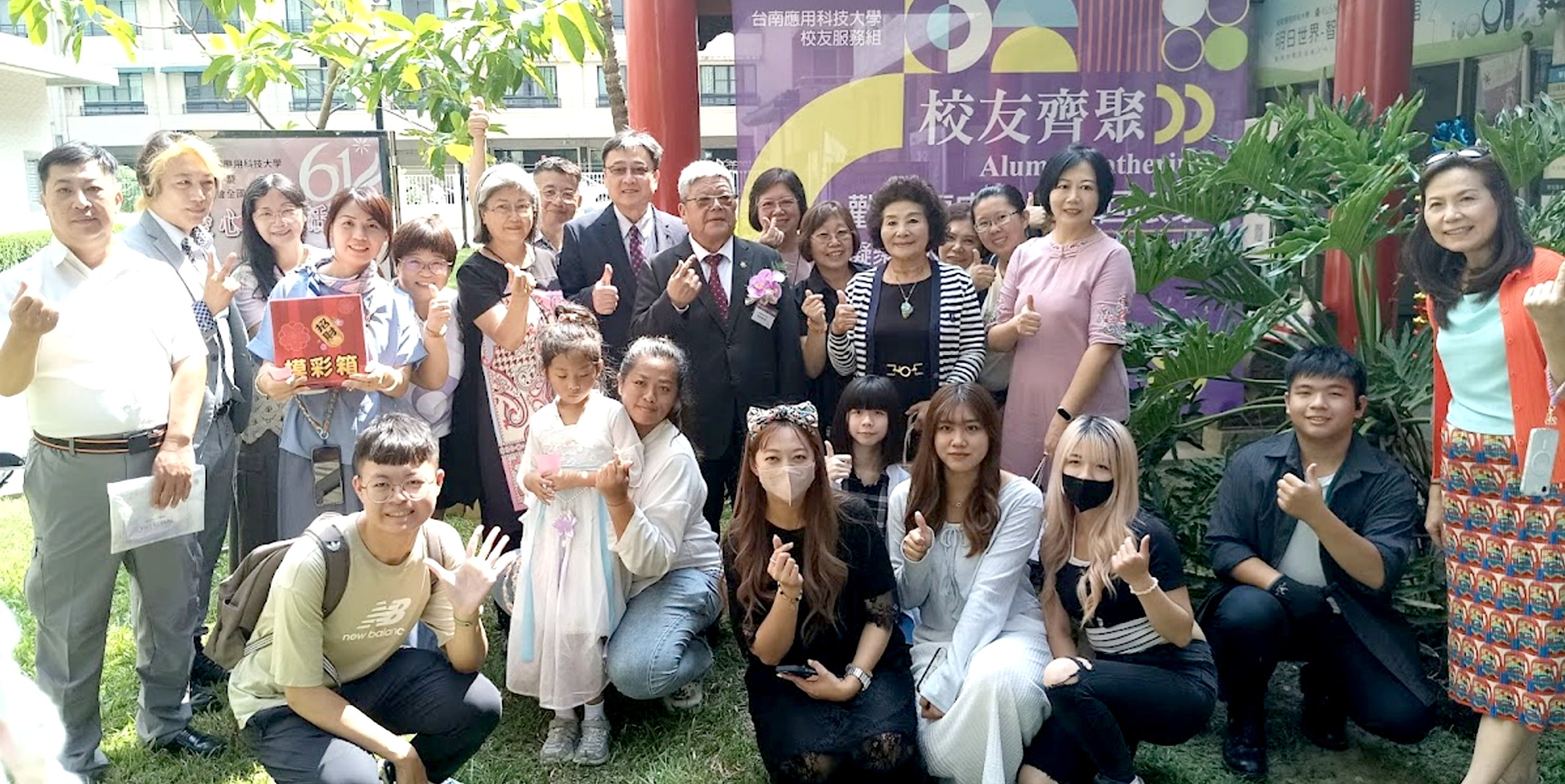 南應大校友回娘家活動,邀請歷屆校友返校共襄盛舉,其中不乏畢業近五十年的資深校友不辭舟車勞頓,回母校參與。為回饋社會傳遞溫暖,校友總會亦攜手各分會及校友服務組,共同舉辦「愛心公益」系列活動, 在總會理事長劉慶華登高一呼下,眾多校友慷慨捐助提供豐富禮品作為公益摸彩獎項。