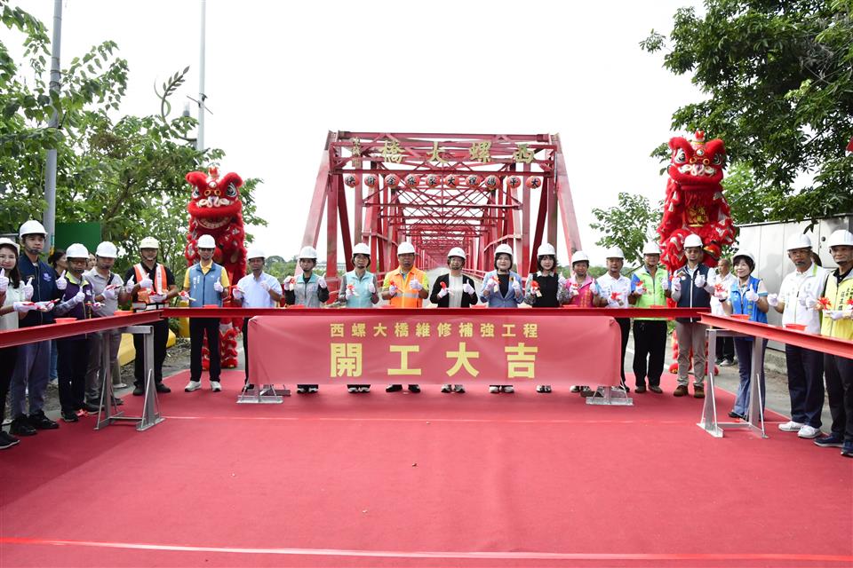 西螺大橋維修補強工程二十七日在彰化端舉辦開工祈福典禮,縣長王惠美邀請雲林縣長張麗善共同見證。施工期間大橋全線封閉,預計明年十二月完工。