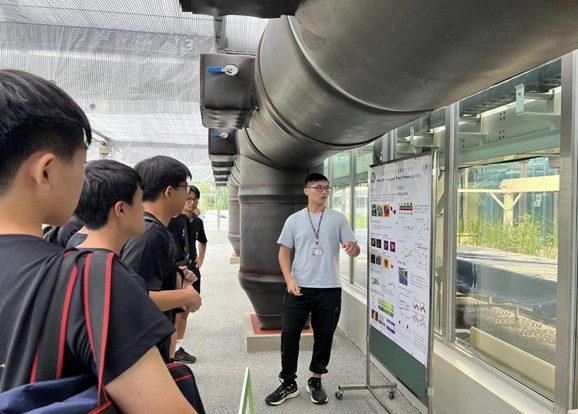 下午則進入地球與工程領域。學生在國家地震中心認識臺灣地震活動分布與強震即時預警系統的運作原理,並於模擬平台親身體驗地震時建築物的晃動。隨後前往建築研究所風洞實驗室,觀摩建築模型在風雨模擬下的受力情形,深入了解氣候變遷對建築安全與都市永續的挑戰。學生紛紛表示,風洞實驗震撼力十足,原來工程師的設計與氣候這麼有關。」