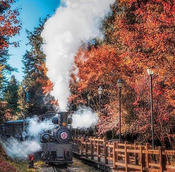 阿里山林鐵「楓度翩翩」主題列車遊程,全程行駛國寶級蒸汽火車三十一號附掛全台灣檜木打造的車廂,前往林鐵特色車站及賞楓秘境,感受百年林鐵穿梭林間聆聽森音、體驗山林的寧靜美好及高山鐵道魅力。